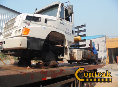 Kit completo instalado: caixas inversoras, suporte, cardam e válvulas pneumáticas.
